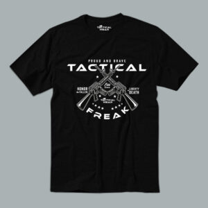 Komfortowa koszulka męska o klasycznym kroju z nadrukiem TACTICAL FREAK z krótkim rękawem, okrągłym dekoltem w kolorze czarnym. Wykonana z 95% wysokogatunkowej czesanej bawełny i 5% elastanu o gramaturze 200 g/m². Dzięki zastosowaniu dodatku 5% elastanu materiał świetnie dopasowuje się do ciała zachowując wysoką trwałość i oddychalność. Koszulka jest komfortowa, idealna do codziennego noszenia. Nadruki zostały wykonane metodą trwałego sitodruku, dzięki czemu wzór nie traci koloru i nie pęka, nawet po wielu praniach. Posiada ozdobne wykończenie wnętrza karku. Potnik z estetycznej taśmy w kolorze czerwonym z nadrukiem. Koszulka posiada także 2 dedykowane żakardowe metki z logo marki. Tył gładki, jednolity z logo firmy na karku. Świetna zarówno do uprawiania sportu jak i do noszenia na co dzień. Całość wyprodukowana w całości w Polsce.